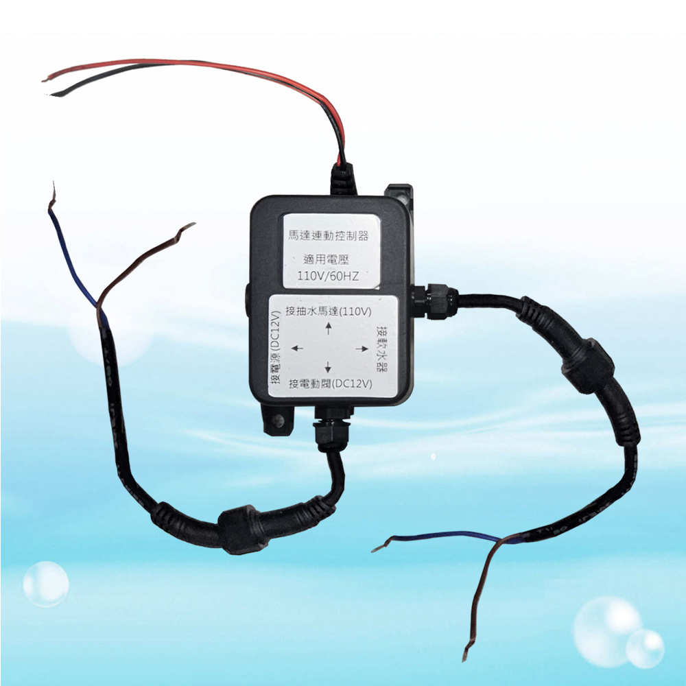 品名:ADD馬達連動控制器 功能說明: 原抽水機後無法接過濾,都需更換加壓馬達才能加裝過濾器,安裝此設備就能解決抽水機後能使用過濾器 適用電壓:110V/60Hz 控制器尺寸:11.5x6.5x5.5cm 重量:240g 電動閥尺寸:11.5x10.5x7.3cm 重量:366g 產地:中國