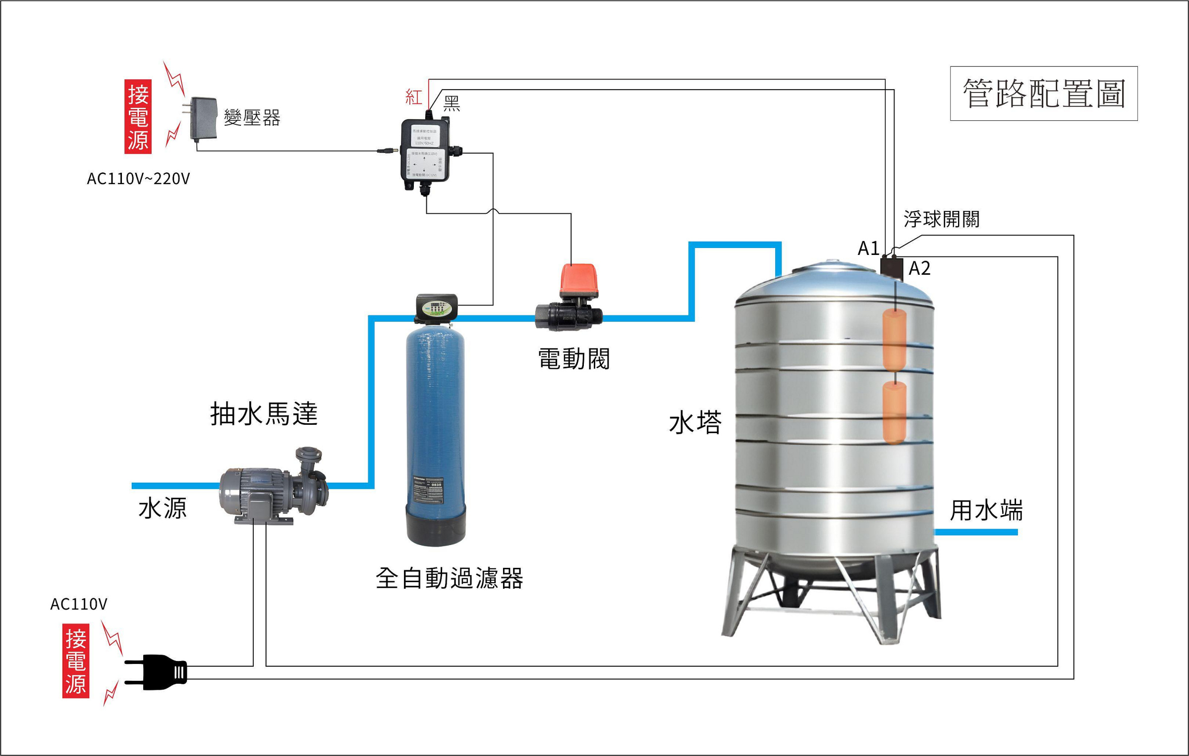 獨棟住宅安裝軟水器時常發生需要將原抽水馬達更換為加壓馬達的狀況,造成極大的浪費設備費用,而安裝此設備就能解決無須將抽水馬達更換的困擾。大幅降低軟水機安裝的成本