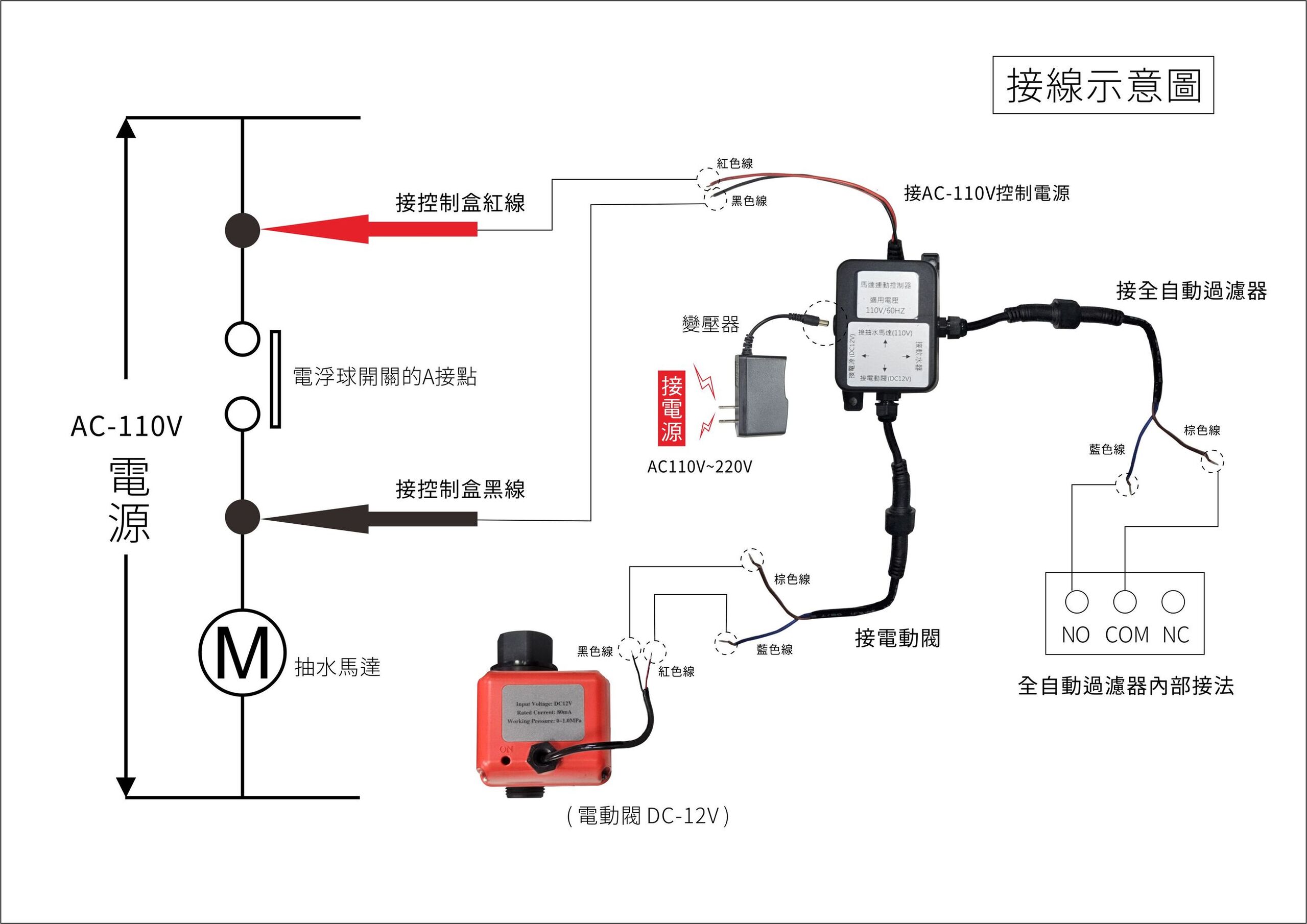 商品內容:控制器一組、電動閥一組、全電壓轉12V變壓器一組
