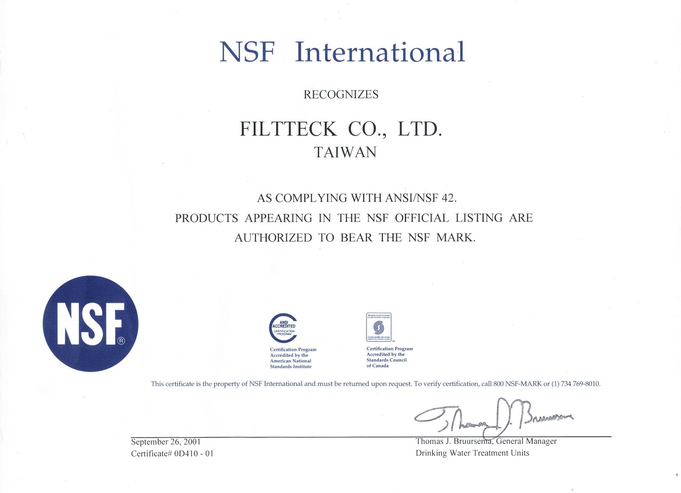 美國國家衛生基金會 (NSF) 產品國際認證的取得,是證明鴻維公司對產品的用心。鴻維科技公司為台灣半導體工廠及光電過濾器工廠唯一指定使用專業濾心之製造工廠,如奇美、華映、台灣啤酒、可口可樂...其專業程度已與美國並駕齊驅,目前月產量達60萬支,行銷全世界。