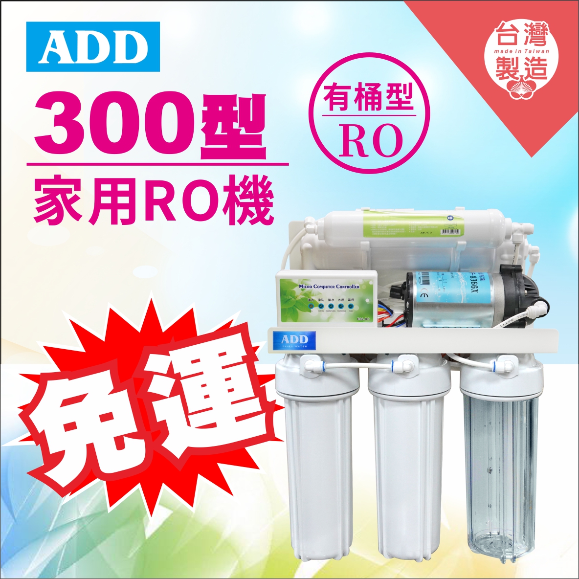 2026歲末年終感恩回饋|驚爆免運價|台灣製ADD-300型全自動RO逆滲透純水機*全機濾心(1~5道) NSF認證、通過BSMI認證