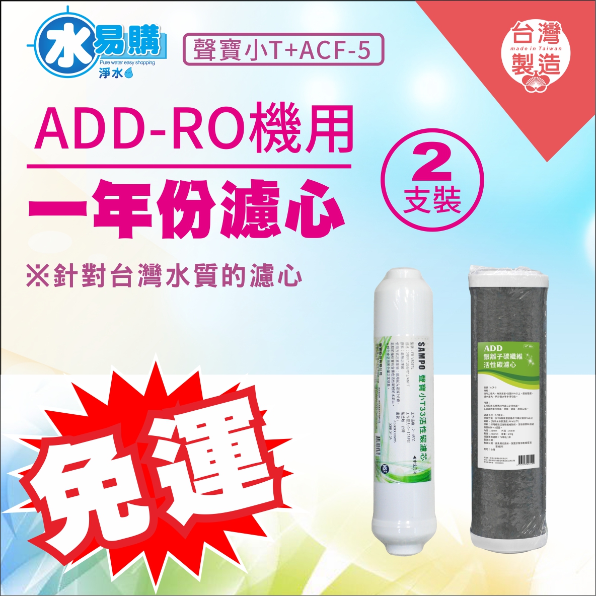 3.搭配在家用RO機上前置三道改採用一道即可,用於自來水質只需一年更換一次濾心,無須經常更換