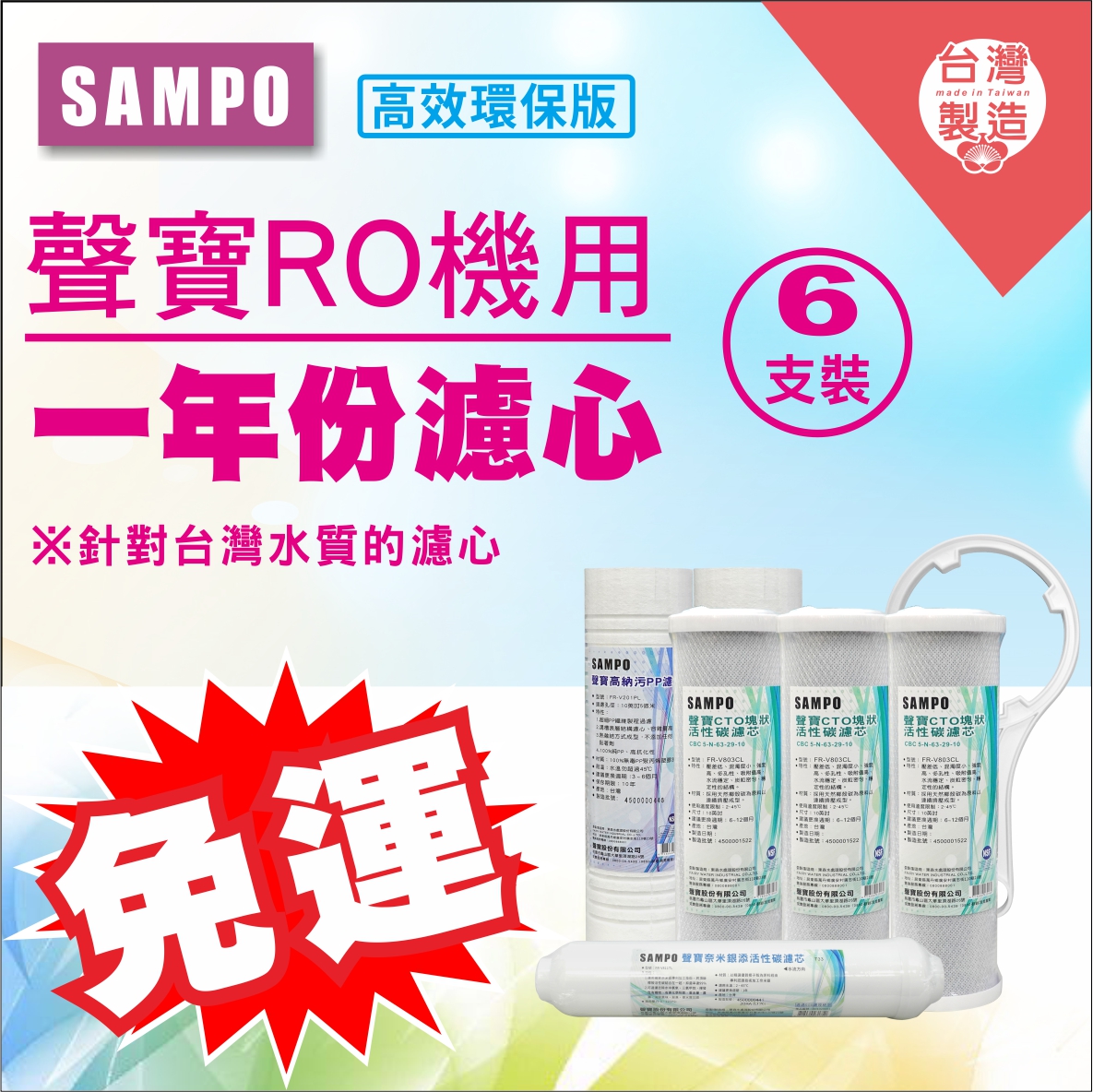 聲寶牌《SAMPO》濾心堅持台灣製造